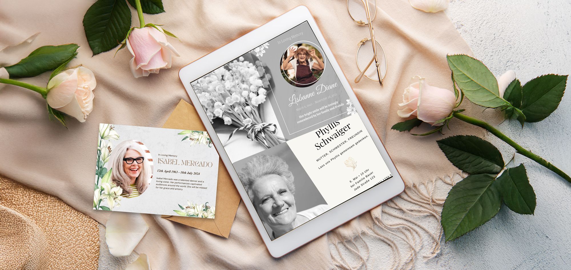 Mit individuell gestalteten Erinnerungsbildchen, Traueranzeigen und -karten, Danksagungen und weiteren Drucksachen beten wir Ihnen liebevolle Möglichkeiten, die Persönlichkeit Ihres Verstorbenen auszudrücken und Erinnerungen an ihn würdevoll zu bewahren. Unsere Drucksachen werden zum Großteil in unserer hauseigenen Druckvorstufe mit großer Flexibilität, Sorgfalt und Einfühlungsvermögen erstellt und sind dadurch sehr individuell und persönlich.